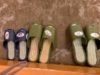 名前を書いてから スリッパにはります(put it on slippers).